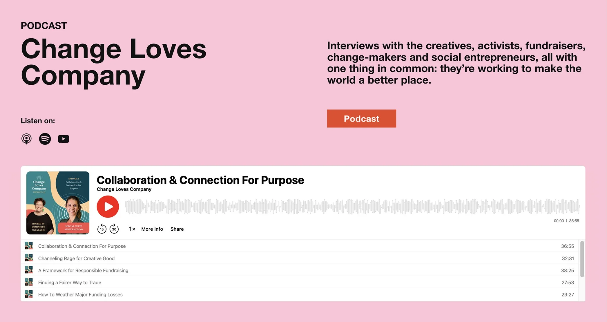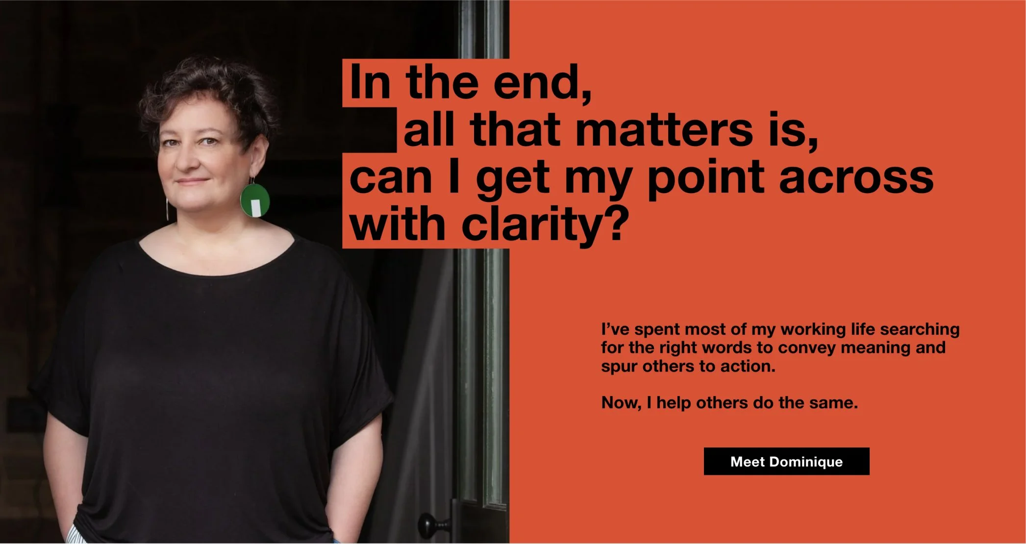 A life-long veteran in non-profit communications, preparing for the next major chapter of her career, Dominique is slowly handing the company she founded to her team, allowing her to now focus on training ,speaking and one-on-one consulting. Everything from the name to the visual identity was up for discussion.